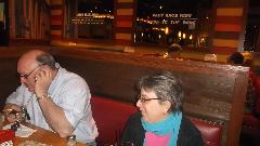 A few more hours and another 170 miles more casually down the expressway with one extended pit stop. By 5-pm some of the folks are checking in to a hotel in Spanish Fort, AL, while I have another hour to do some planning. By 6 we were headed out for dinner, but a few restaurants had two hours or more waiting time. We finally ended up at Captain's Table on Battleship Parkway in Spanish Fort, AL. The waiter was busting his chops with hustle but not getting enough cooperation from the bar and kitchen, so service was a bit slow. But the food was excellent all around, and the waiter was entertaining. In the end we called in the supervisor to say the waiter should get a raise, and we all left him a big tip.