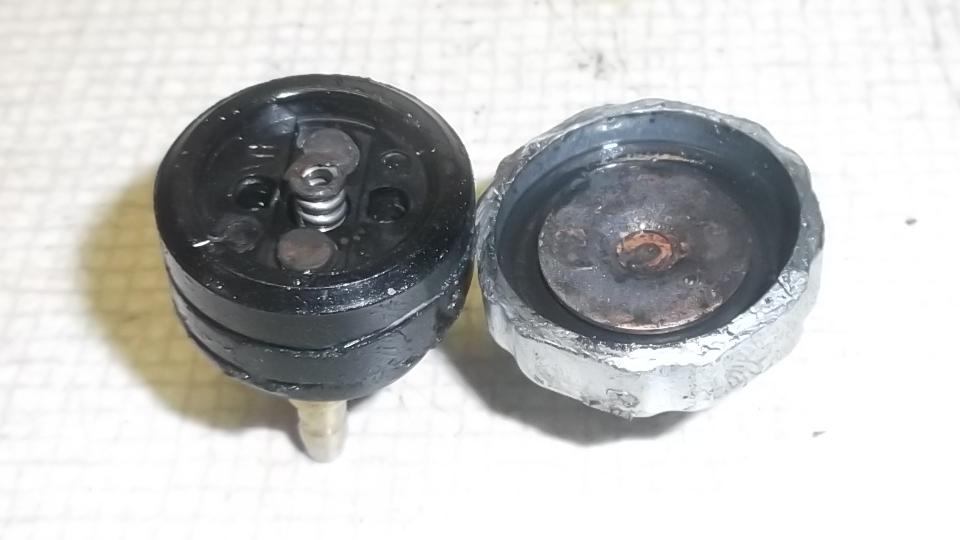 I don't know where all the carbon came from, possibly from heating the plastic housing. The brake system is running DOT-5 (silicone fluid), and there was no fluid on the contact side of the rubber diaphragm.