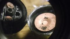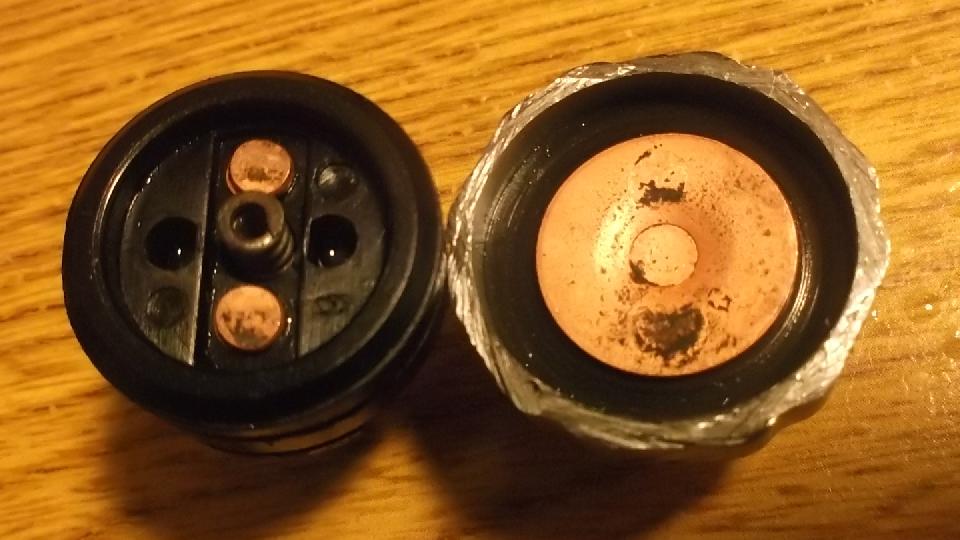 I cleaned the contact parts with vinegar and salt, about 10 minutes with a little scrubbing, then a couple more pictures, the last one with a magnifying lense. The contact materials are certainly rubbish.