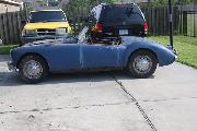 Fifty miles to the west (by way of I-10 and part of the gulf coast road US-90) we arrived in Bay St. Louis, MS in early evening to visit Frazer and Beverly Rice. They have a very nice MGA 1600-MK-II. Everyone along this stretch of the Gulf coast talks about Hurricane Katrina, before and after the event. Yes, six feet of flood water, up to here. The MGA that was in the garage was totally submerged, written off, but then restored and sold on with a "Flood" title. This blue one was father north on high ground, untouched by the flooding, and subsequently had the restoration finished to be the replacement car.