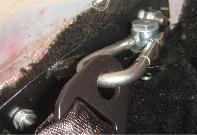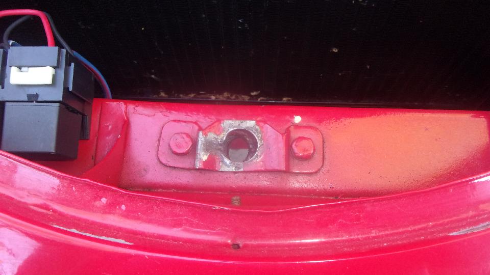 The other "niggly little problem" was the bonnet that would pop up 1/2-inch and stick when it was released, then needing two people to jiggle it to and fro to get it to let loose. The latch parts were correctly assembled, and seemed to be fairly well aligned. Seems like the top guide plate was catching the latch pin at the rear edge. Rather than chip up the paint to loosen the screws for re-adjustment, It only needed a little wanking around with a fat screwdriver to push the pack edge of the hole back a bit, and all was well with the world, latching and releasing as it should.