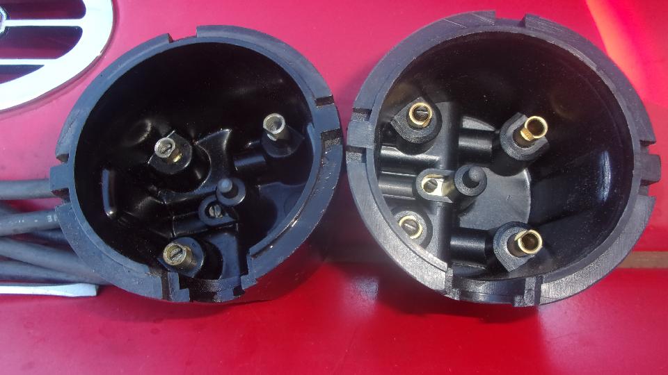 Nice weather, sitting in the shade at the parts store, so we took the time to sort and store a lot of small spare parts recently received, install another new MGA cowl vent grille to replace the banana shape one from Moss, install a new side-entry distributor cap with nice brass terminals which should last a good long time.