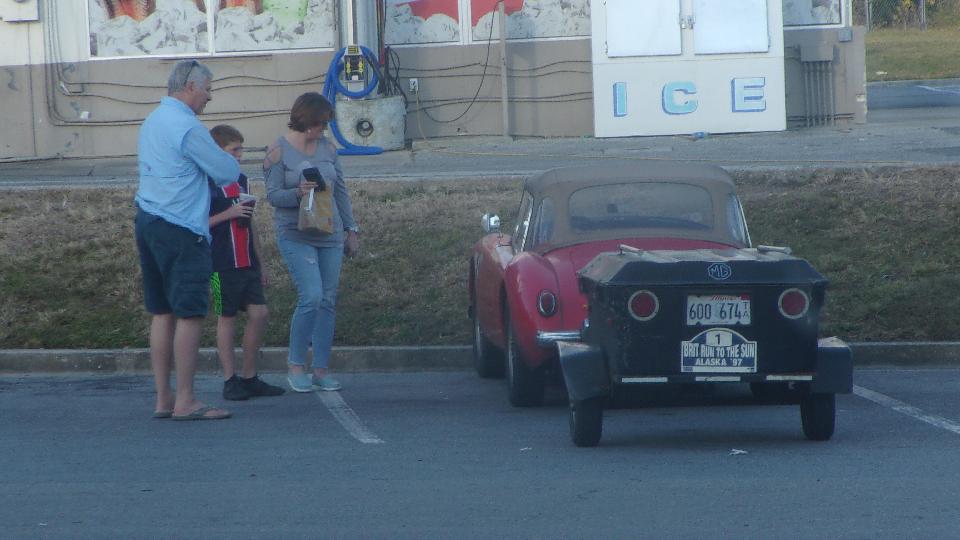 This happens, almost daily, and more than once today. Leave this curious car parked in public, and occasionally someone will stop to check it out, poke around the stickers to see where it has been, explain to a friend or family what the car is, and kind of renew the interest in the old cars, at least for a few minutes.