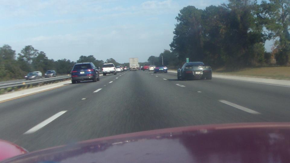 Got to cruise past a long column of Corvettes around 9-am, Northbound I-75, they all turned off near Ocala, FL. I recon they were all headed for a car show (not hard to find). When we stopped for breakfast someone yelled. "Nice car, Buddy. I got a '74 Chevelle at home". Interesting how people who used to stare down their nose at us have a change of attitude when their old car gets to be a classic. (Or it's not the same person who was the original owner).