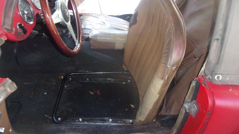Weighing our options, Moss Motors sells a 2-piece seat frame for something over $300, but that's where we got the one that just broke, so not very enthused about that idea. Scarborough Faire would sell the bottom seat frame separately for less than half that amount. but being a holiday week end not sure when it might be shipped, and don't really want to be driving around like this for another week or more. So we did the expedient thing, called a friend in Bonita Springs, FL to borrow a work space and a MIG welder.