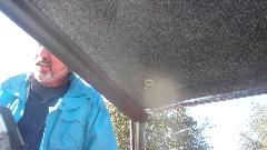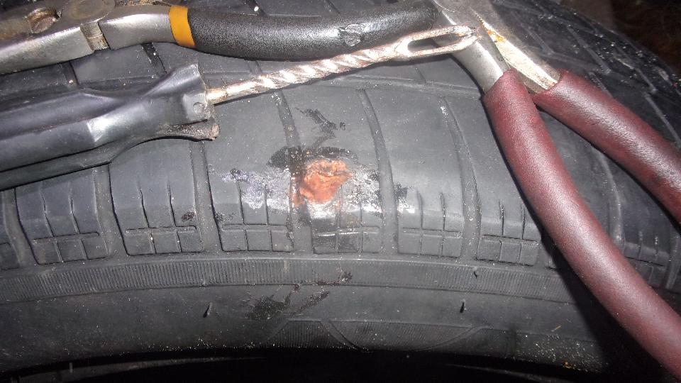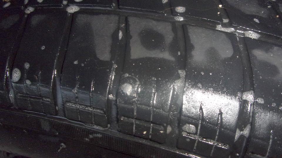 Then we had another problem to attend to. While working on the seat we had the left side of the car jacked up and noticed the right rear tire had gone almost completely flat. Oops. We knew it had a slow leak, having added some air every few weeks for a couple of months. But last time adding air was only 5 days ago, so that leak is a bit too much, and time to fix it (while we still had a little bit of daylight). Not long to find the culprit with a little soapy water and bubbles. It looked like just the tip of a tiny nail, and it popped right out (followed by a loud hiss). Just a few minutes to plug it and shave it and bubble test it again (no bubbles), then get the wheel back on the car and pack away all the tools as daylight suddenly disappeared completely.