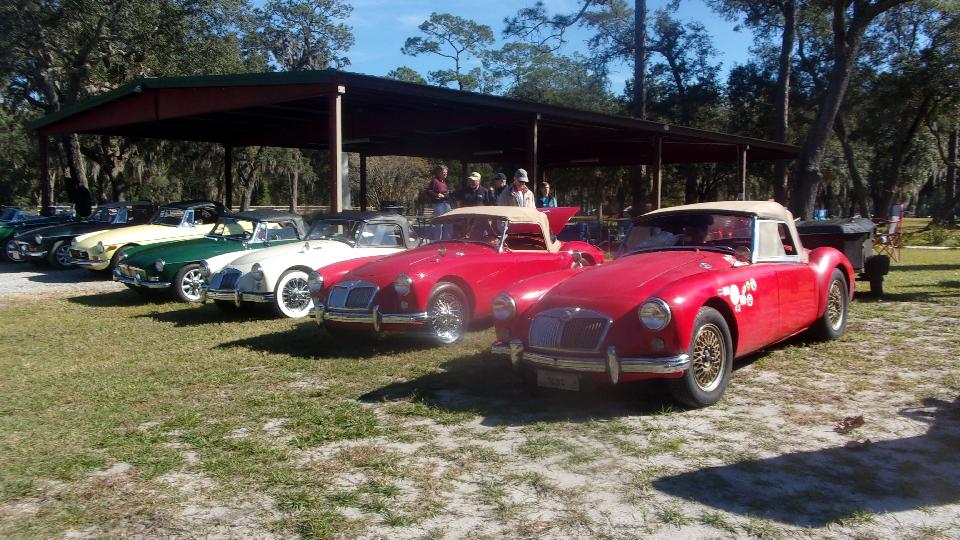 Then we were heading for a visit with MG Classics of Jacksonville at Trout Creek Memorial Park & Marina in St Augustine, FL. There were about 13 MGs (don't count the motorcycle) and a few other odd species, and about 40 people here.