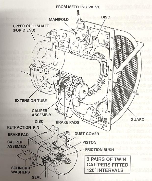 Then I got a question about an odd Dunlop Disc brake. Took a while to figure this one out, as it is the brake for the propeller shaft on a warship (in Chile I think). One disc rotor, three calipers, four pistons in each caliper, 12 pistons for one brake. The question was about the retractor limiting central bushing in each piston, which is similar to the parts used on MGA 1600 Lockheed front disc