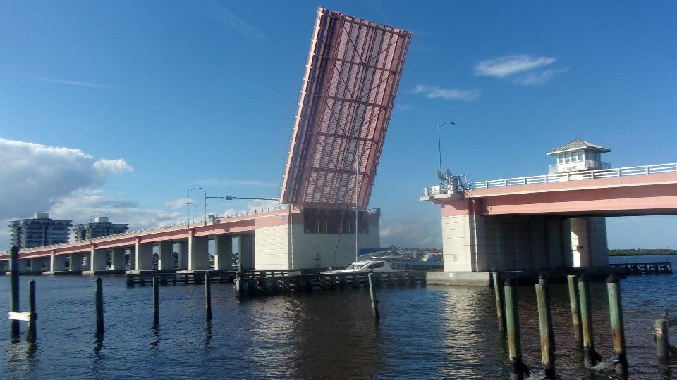 Off to visit All British Car Club of Volusia County at The Grille at River View in New Smyrna Beach, FL. 18 people, including the two of us, and it looked mostly like a dinner meeting. But apparently they had a rather informal election going on in the background, along with a lot of dinner chat. And we got to watch the draw bridge cycle a couple of times for passage of some high masted sailors.