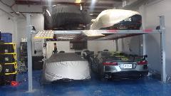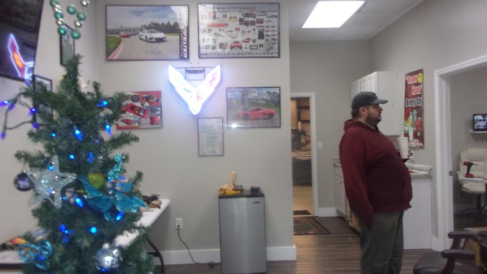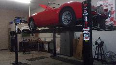 Then load the Healey into a box trailer heading to an upholstery shop to have the interior installed. Meanwhile a neighbor two garage condos over had his BMW with V-12 and twin turbos out for some exercise. Snap a picture of his place while the door is still open, and get a better idea why people like to buy a garage condo. I will need a better look at this later, but that hoist looks like it picks up two cars at once on a single hoist for the sole purpose of double stacking. Yes that's a new C8 Corvette with all the whistles and bells bottom right. Wanna guess what's under the other covers?