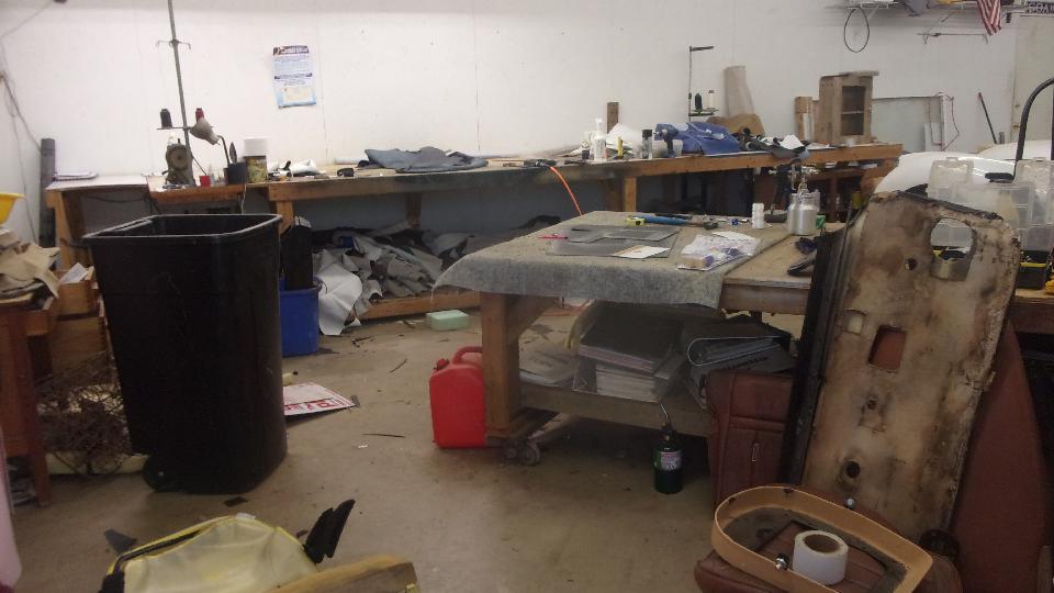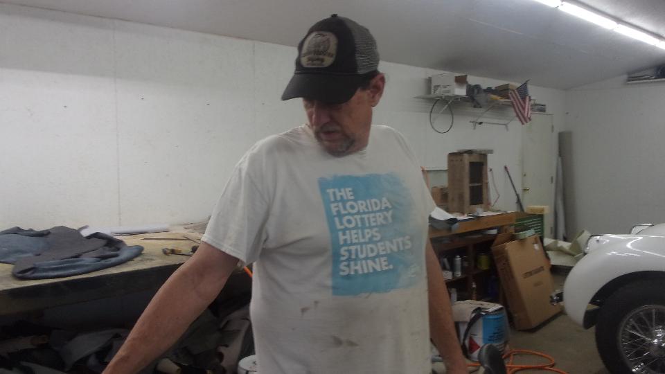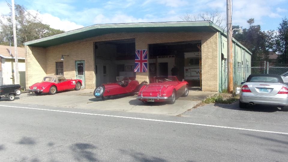 Half hour later offloading the Healey at Billy's Trim Shop in Panama City, FL. Tuck the car into a storage space, and head over to the shop. Gotta add this place to my Shops List.