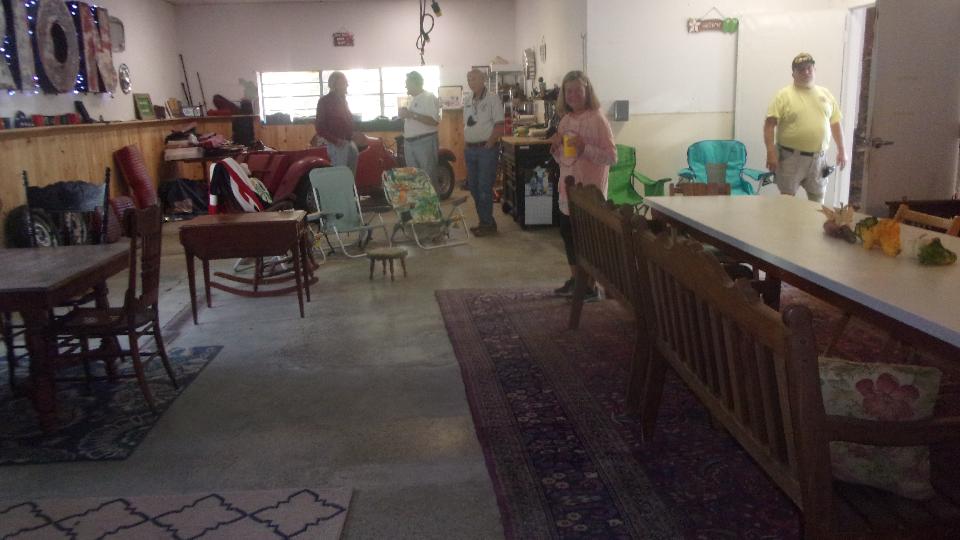 1-PM appointment with some friends and members of Panhandle British Car Association. We had missed their November club meeting, and no club meeting in December, so this was a special gathering just for us. We met at the garage of Paul and Mollie Reese. This place used to be an old fire station in Pensacola, FL, so it's pretty big, That's Paul's MGA in the front hall.