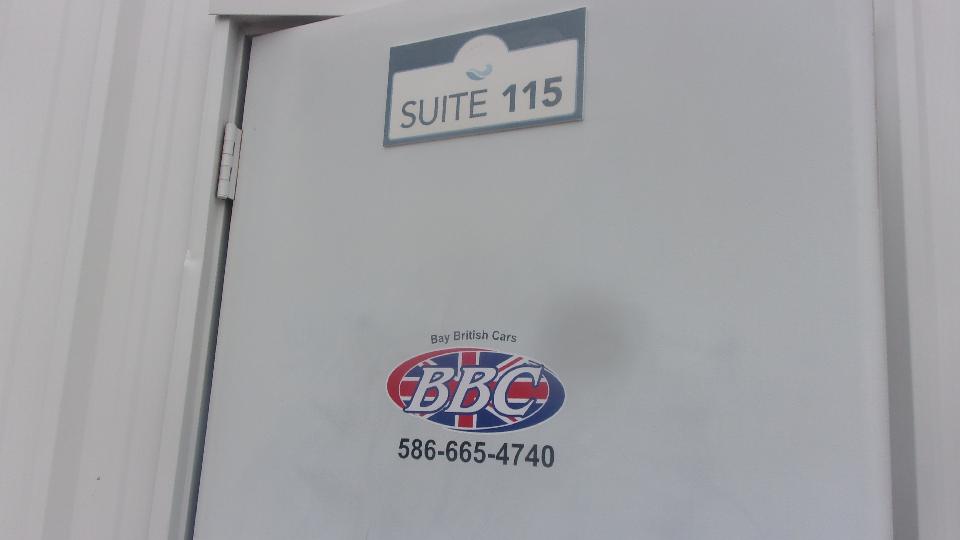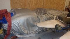 And the back door, club logo all over the place, and about to become the new mailing address for the Bay City British Car Club. First step inside reveals (or hides) Charlie's 50's vintage Jaguar under the tarp.