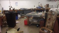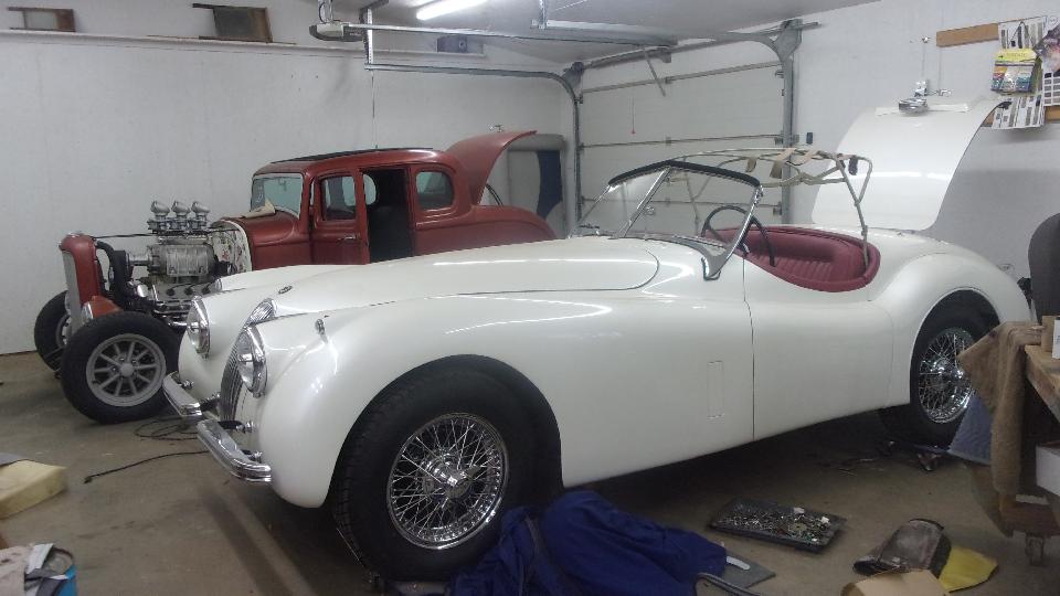 Step inside and I think it is better organized than it looks, with plenty of table space and all necessary tools. Say hello to the proprietor Billy Taylor, the guy with the magic skills in his hands. There was a really nice Jaguar XK-120 freshly restored with Billy's brand new interior work, absolutely beautiful, just waiting for its new top and tonneau cover to be installed. And maybe no one will notice the magnificent street rod right behind it.