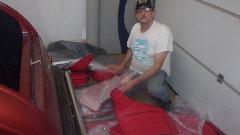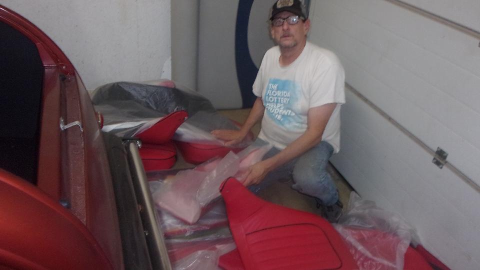 Trying not to drool too much while I was poking at those really nice seats that I wish I had in my MGA. Then Billy was sorting through the new carpet and interior and seat kits he was about to be installing in the Austin Healey