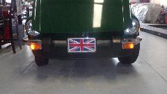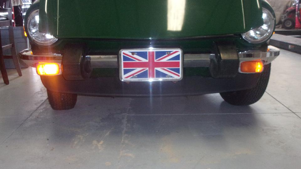 The front side marker lamps must be British car replacement parts made in the USA because the wiring color codes are wacky. Where Lucas dictates that ground wires are black and parking light wire are red, American think Black is a hot wire while ground wires are green. So getting this sorted out we need to plug the lamp Green wire into the Black harness wires for grounding, while the lamp Black wire gets plugged into the harness Red wires for power input. That just drives me nuts having to mix wire colors in a common connector. By tracing and debugging one wire at a time starting at the light switch to the fuse box, and then forward, I think I have it psyched out and mostly fixed. Finally got tail lights and marker lamps at all four corners, except very dim lamps in front as a consequence of the front ground wires not having any chassis ground. That will wait for tomorrow, as we ran out of time,