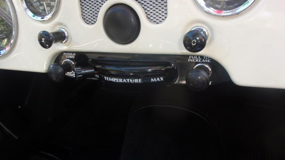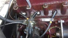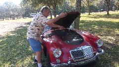 As soon as I had wolfed down the food I was back to work on the second car of the day, a Red MGA owned by Fred Woller from Jacksonville Beach, FL. This one blew out its heater valve just as it was arriving, dumping coolant on the distributor and stumbling in with wet ignition. The Magic Trailer had the spare heater valve and gasket for this one too, so not too long to get that changed and refill the 50/50 coolant mix (also carried in the trailer).
