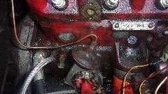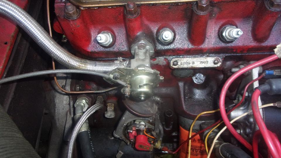Once fired up again it was still running badly, so I checked and set the ignition timing, but no joy. Pulling spark wires one by one wasn't revealing much either, until I noticed spark leaking under the edge of the distributor cap and sparking onto the cap hold-down clip. Been a long time since I have seen one tracking the HT spark down the inside of the distributor cap, but there it was. With cap off and in hand and a bright light, we could see the sooty tracking mark very clearly, so it needed a new dizzy cap. Unfortunately I recently installed the only spare I had on my own car, and not another spare cap available, so we had to send this car home running on three cylinders. But the owner assured me he had a new cap and new wires at home, and the points and condenser and rotor were already new parts.