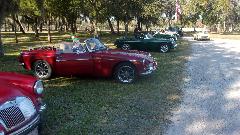 Panama City Beach, and head east. Change of time zone, one fuel stop, and a couple hours later we were already sitting in Tallahassee, FL for late lunch. Before dusk we had some sidewalk supervisors checking out the MGA again. Day after day of discussion on the BBS about change of part number for the MGA front valance mounting screws, and still no agreement on what the early ones looked like. Will be heading a bit farther east tonight but still have one more full day to spare.