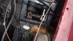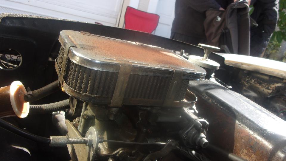 While fiddling with the clutch we notice the pedal goes half way down with no resistance, like lots of air still in the circuit. Double pump helps, but the the pedal gradually drops to the floor with no motion of the slave cylinder, meaning the clutch master cylinder is leaking (internally or externally). Then Tito was asking about the wet floor in the car under his feet, which of course was brake fluid from the leaking clutch master cylinder. Rats, we were just going to tune the carbs, right?