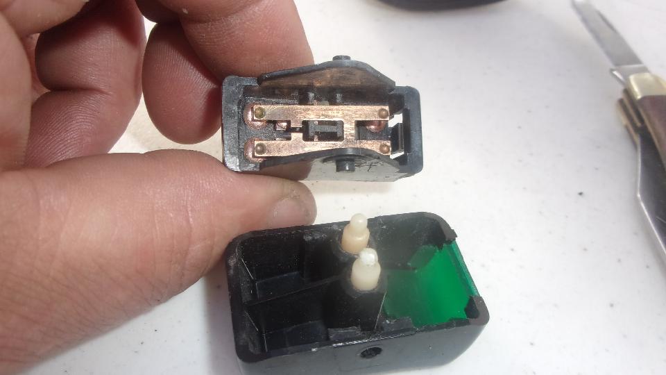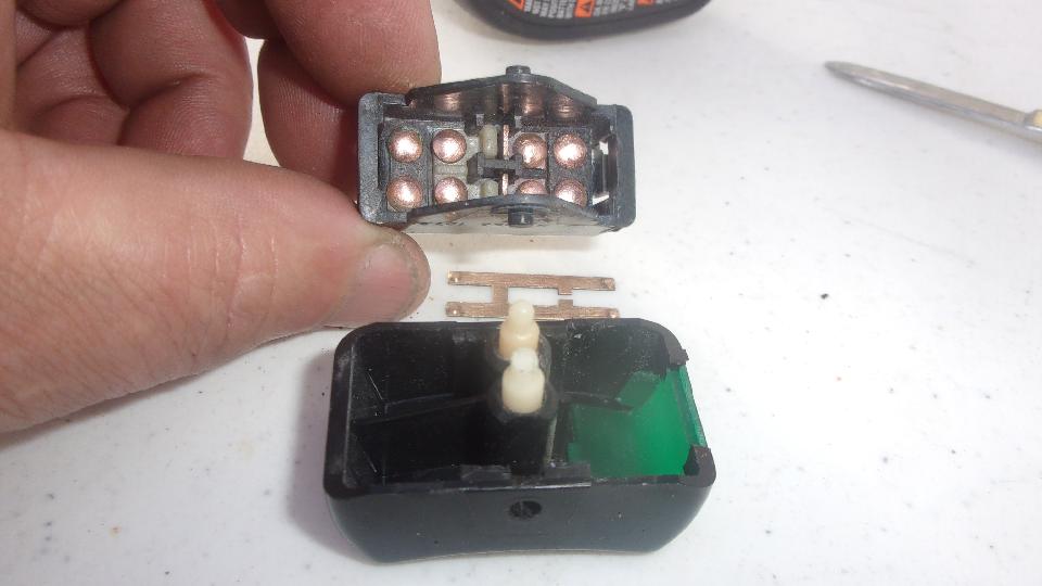 Jerry said he was sure the brake switch was working just a week ago, so check it again, and sure enough it works, with only the tiniest movement, so at least it's not stuck. Just replace the left rear turn signal bulb, and on to testing the 4-way flashers. Only one flashing at right rear, so get after cleaning contacts on the hazard switch. Getting pretty good at repairing the plastic rocker switches by now, but cursing the cheapness of non-plated brass contacts back in the 70's.