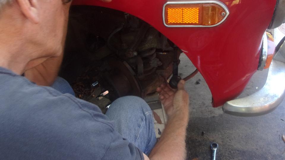 We had a lunch break in there somewhere, and then the guys were replacing both tie rod ends due to perished rubber seals. Then it was quits for the day, cover it up, and off to find a good WiFi spot.