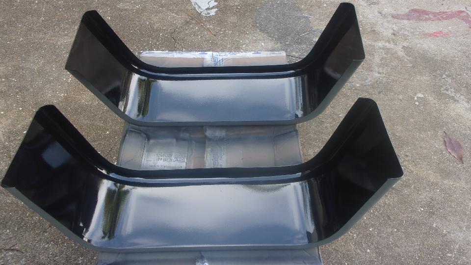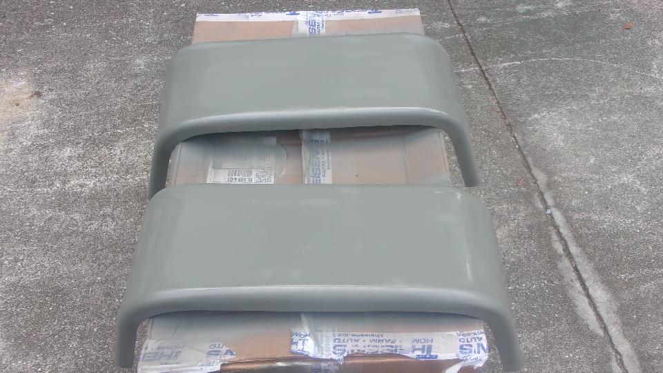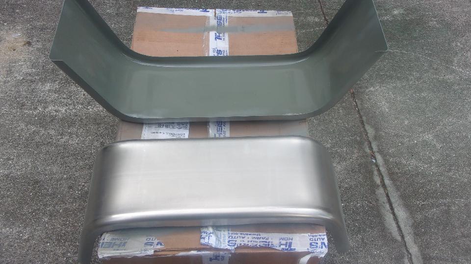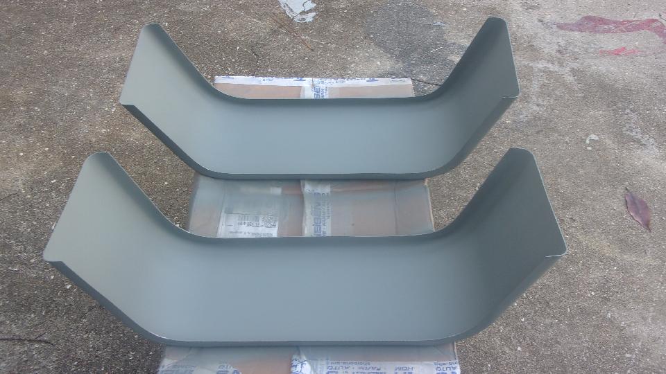 Going to jump on the high priority, so off to Tech central a day early when there will be only a few people there. Unpacking the new trailer fenders, knowing they would be bare steel, nice to find an oil coating on the metal that keeps it from corroding during processing, storage and shipping. Very easy to clean the parts with lacquer thinner and a few paper towels, let dry for a few minutes, and give them a spray of etching primer. After the first hour drying time we shoved the parts indoors, and will come back tomorrow for final painting.