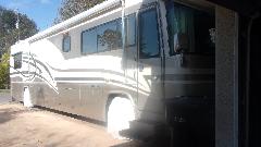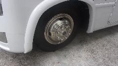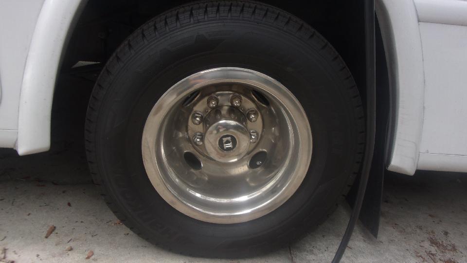 Couple of the guys bailed out around noon, so was having a nice chat with Jerry when UPS showed up with a new wheel for his motor home, for the purpose of adding a spare tire (which is a seldom installed option in motor homes). Couple shots of the single front wheel and dual rear wheels (nice decorative wheel covers).