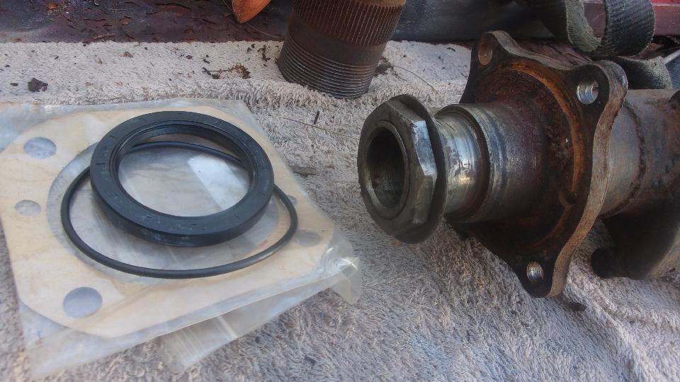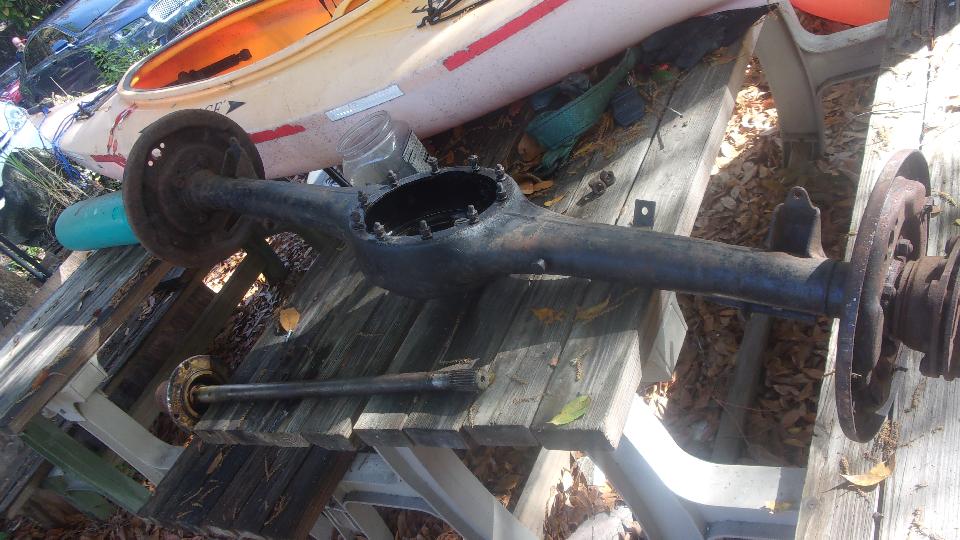 Then a bench project for someone savaging and converting an MGA rear axle for use as a trailer axle. Stripped to the bare housing, disposing of all the brake parts and packing plates, no differential at all, cut the halfshafts off just inboard of the splined hubs, and making a blanking plate to close the front of the housing. The Magic Trailer provided parts for the hub seals, gaskets, O-rings, and one wheel bearing (replacing a rusted one). Intention is to pack the double row ball bearings with grease and run it with no oil in the center housing. Scratch head over that one for a bit, and all comments welcome.