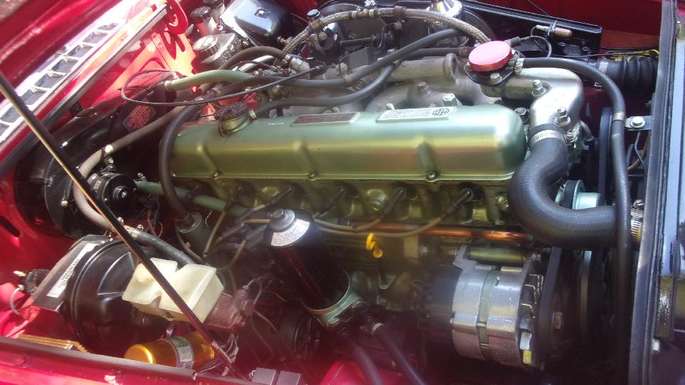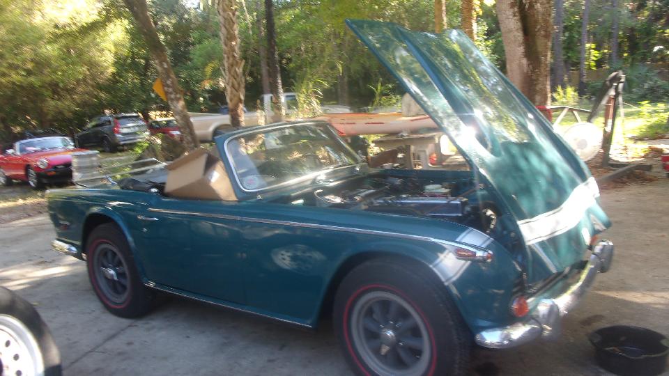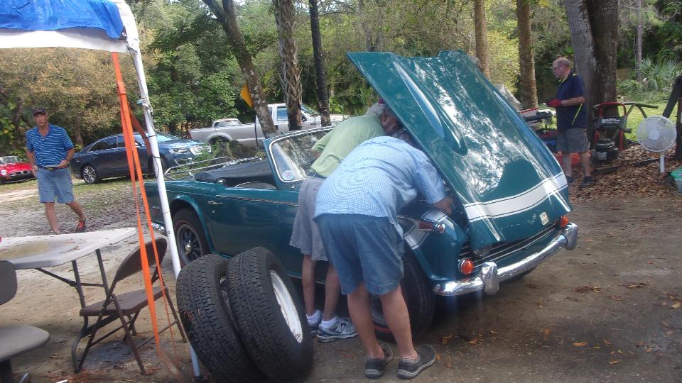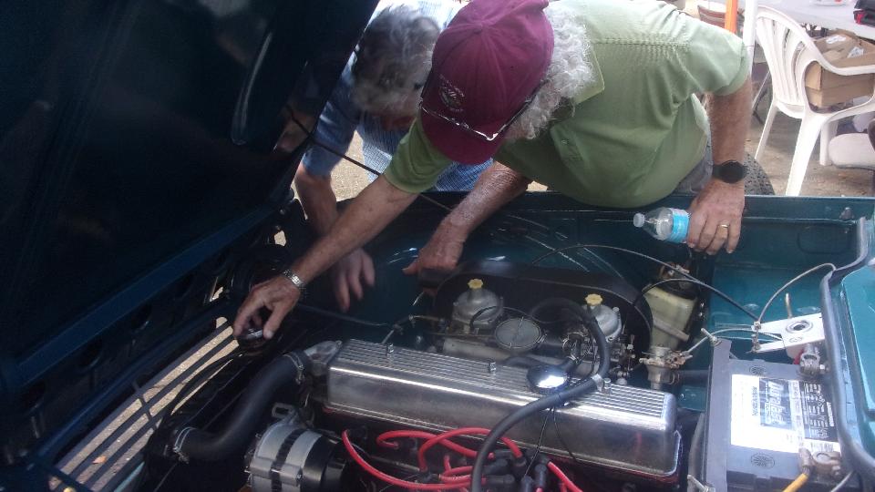 Several more cars around by this time, including a TR6 with a bit of a coolant leak. I think that one turned out to be a loose lower radiator hose clamp.