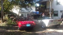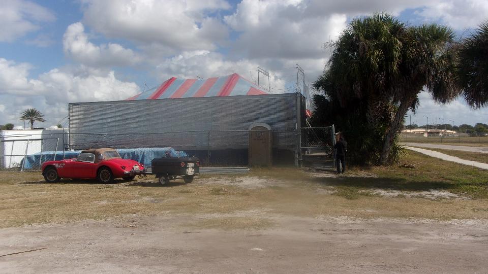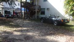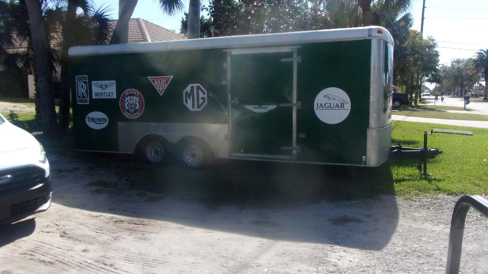 We took the Florida limousine for a cruise to visit a few "car guy" neighbors. First guy was out for a bike ride, but we had him on the phone for bit and got to check the place out. Nice car hauler trailer.