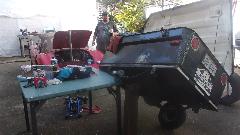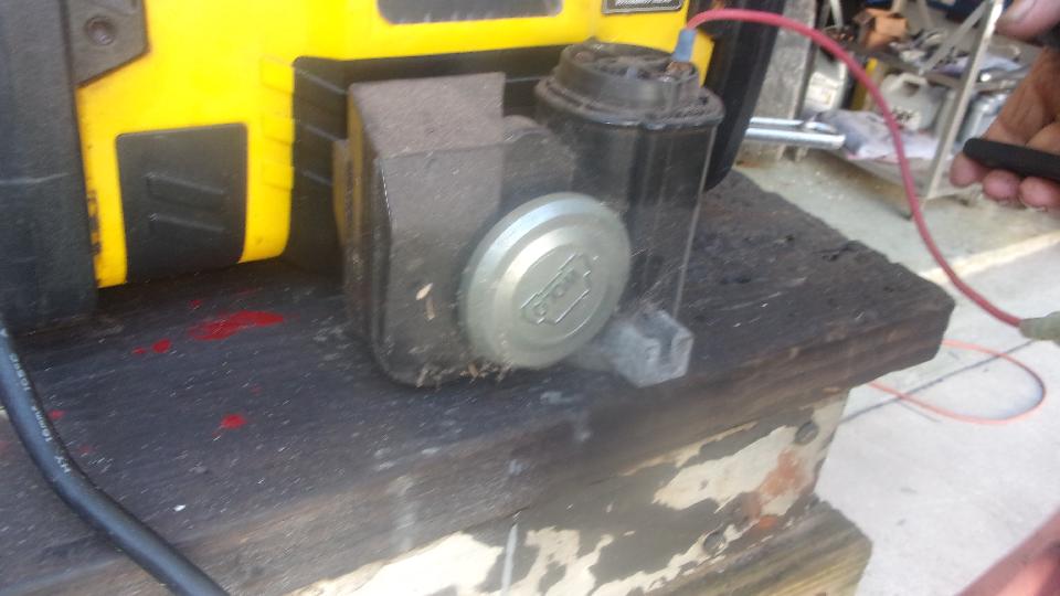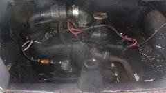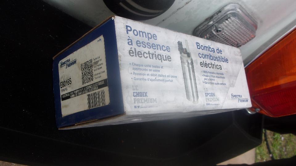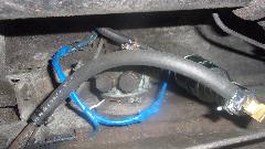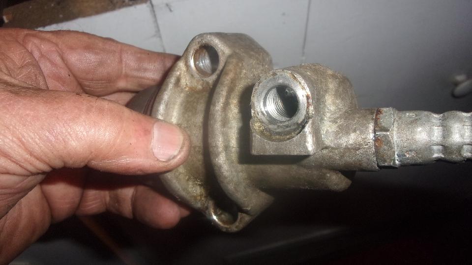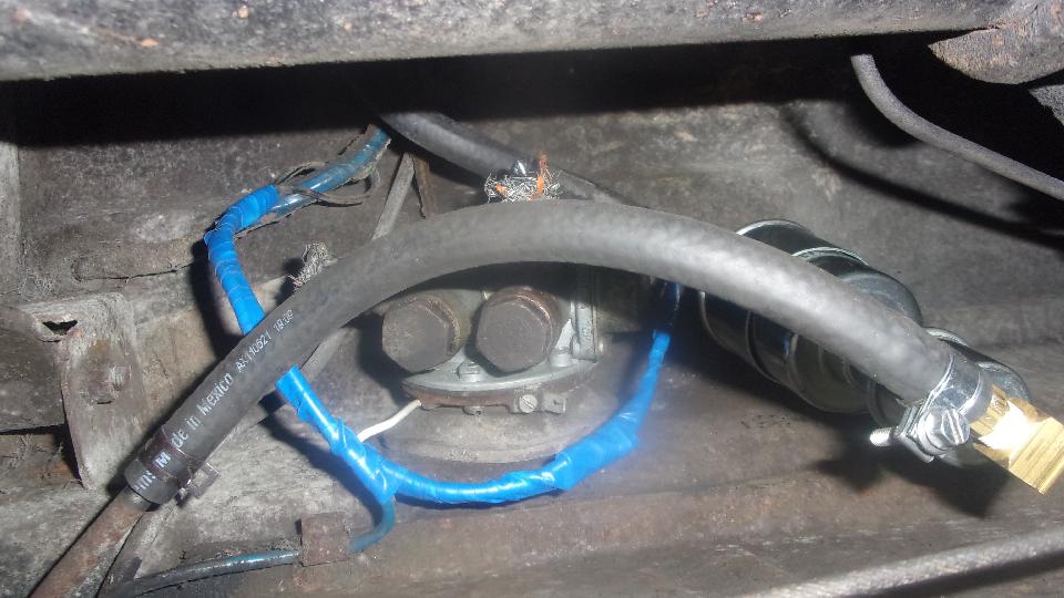 As a matter of expediency, pull an Airtex type universal electronic fuel pump out of the Magic Trailer, and begin configuration. Oops, we must have installed one too many of these recently, because I was out of brass street ells and hose barbs. Time for a trip to a parts store while Tito had an afternoon appointment at school. Wow, four parts stores before we found enough of the brass bits for Tito and for spares in the trailer. Around 6-pn we were back at it, removing old hoses and installing the new pump. Didn't take too long, but it was getting dark enough to need lamps and flashlights by the time we were done. And TA-DA, the engine was running.