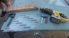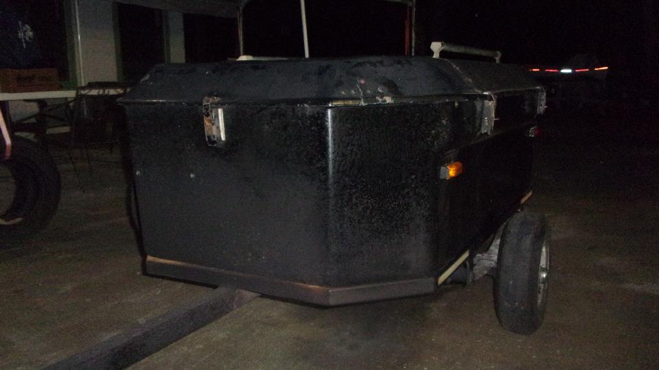 Special project, working alone today uninterrupted, time to change the beat up generic steel fenders on my fiberglass trailer for the new (cheap) steel wings. The serious incident with right side was a Lincoln backing into it at a rest stop on November 2017. For the left side, a semi truck ran over it in October 2021. I have long since lost track of how many times this trailer has been abused from many different directions. But new "jeep" fenders are so cheap $25 each, $64 the pair delivered, that it is easy just to install new ones. And for sure the ones in service since February 1999 don't owe us anything. So empty the trailer, off with the wings, and get on with repairing the hole where a bolt was torn through the fiberglass box,