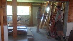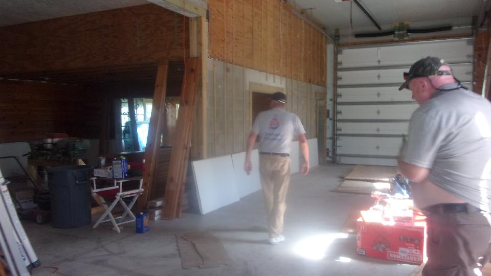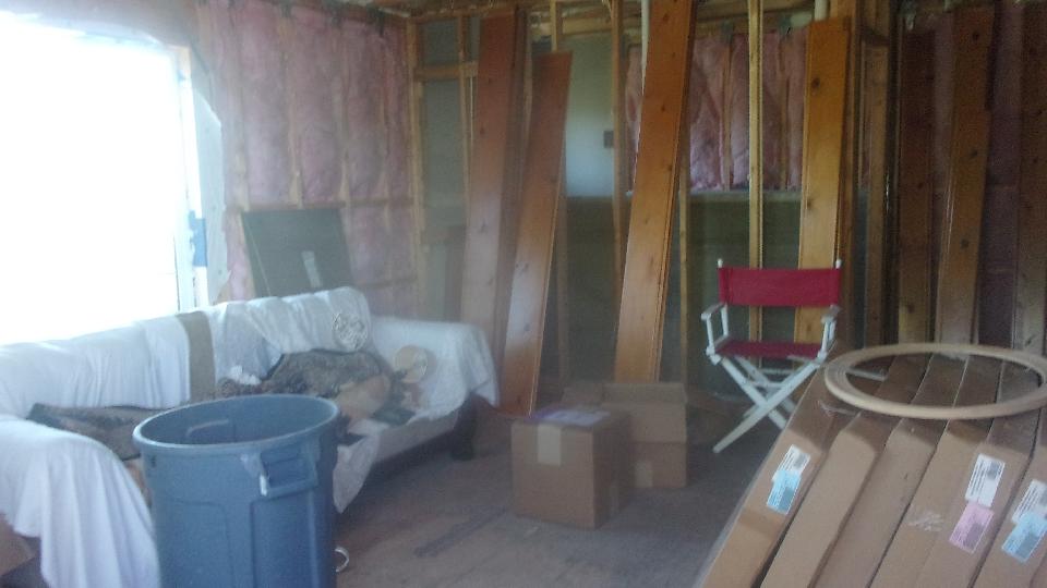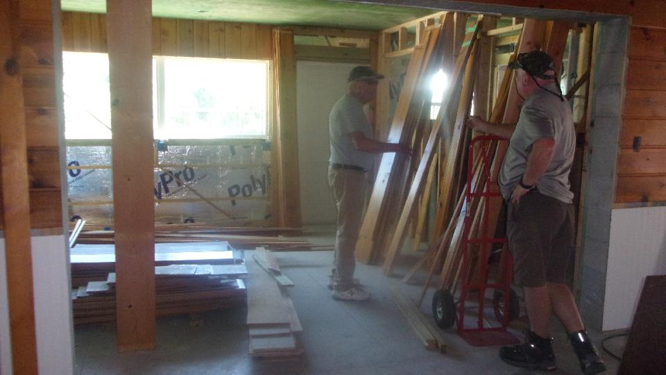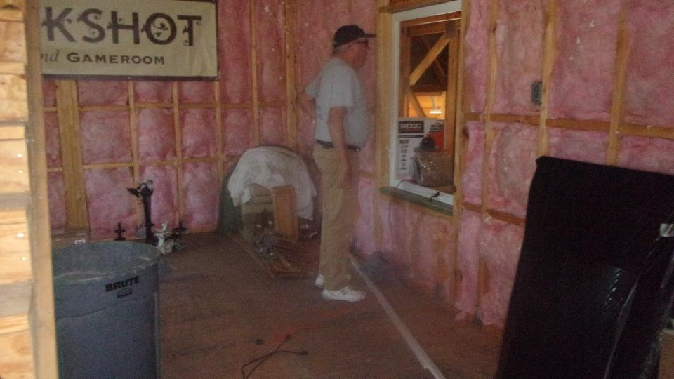 This place belongs to Douglas Kniff. The significant bit here is a new toy shop under construction, three stories tall plus a cupola on top. The double door on left has space two cars deep with high ceiling for a car lift or two, and club room space behind with kitchen and full water closet. The entire interior is destined to be lined with Knotty Pine board.