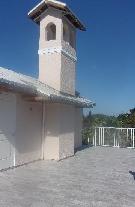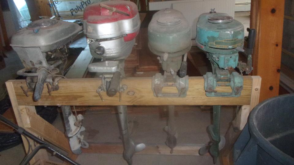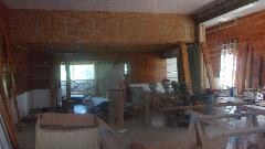 Think if this as a "widow's walk", not close to the ocean, but it does have a view above most of the tree tops all around. The odd bump in the wall with the cupola above it is going to be a fireplace on the patio. Back to the ground floor on the way out, get a picture of a few toys already resident, some vintage outboard motors. Nice toy shop.