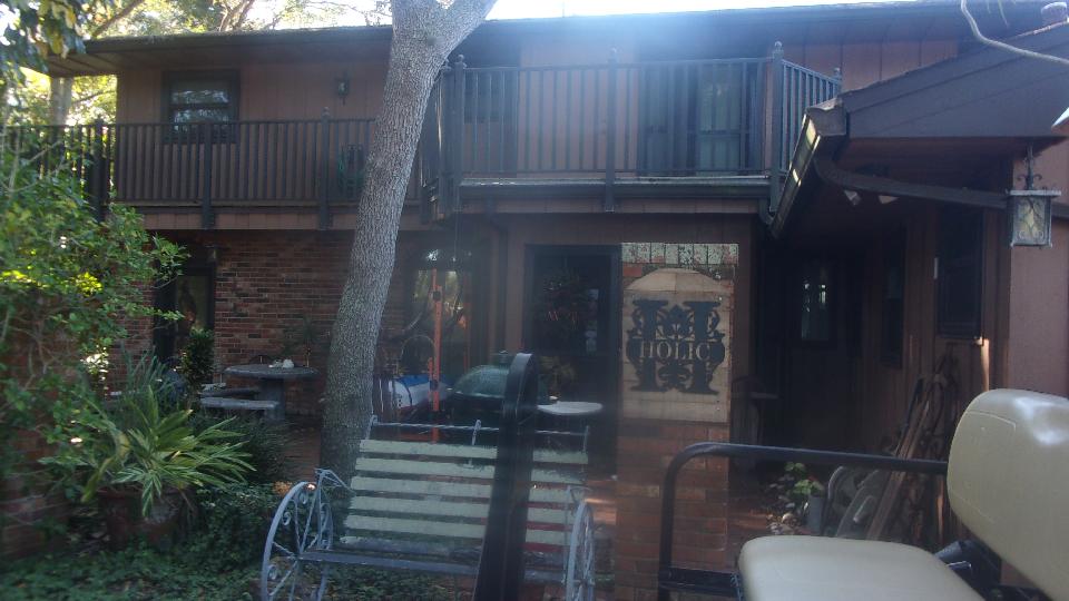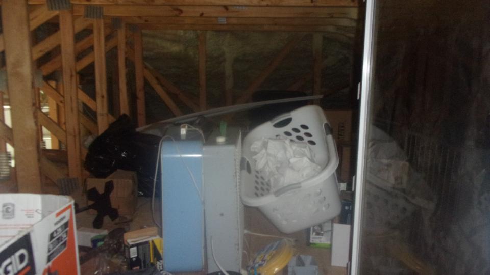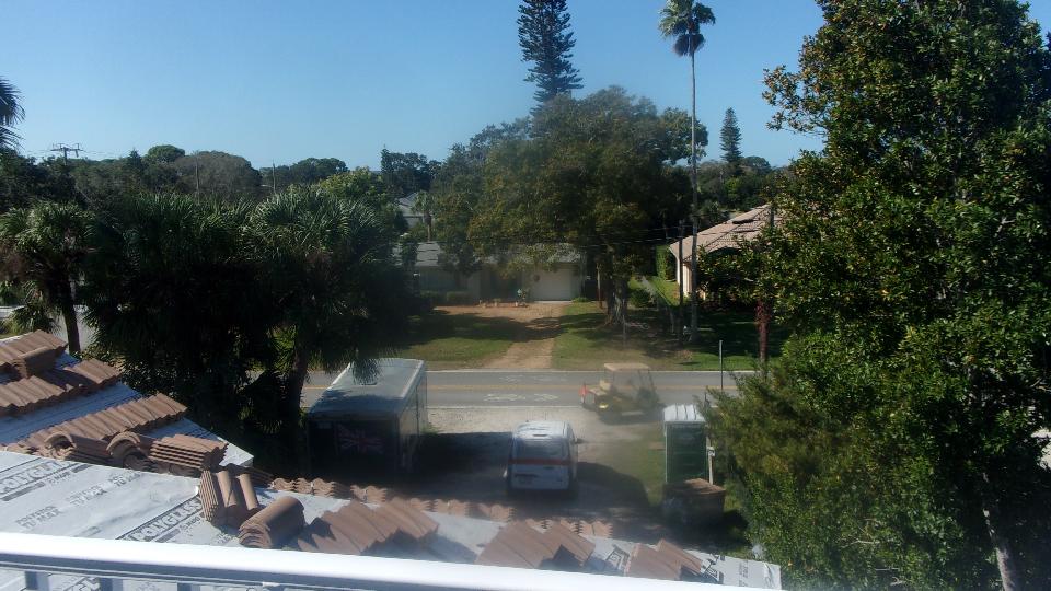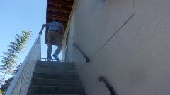 The "window" on the right was considered to be looking down to the main floor garage space, but a change of plans gave it a floor to be used as storage attic space. Up another flight to the third level patio and walk around balcony and a couple of storage rooms.