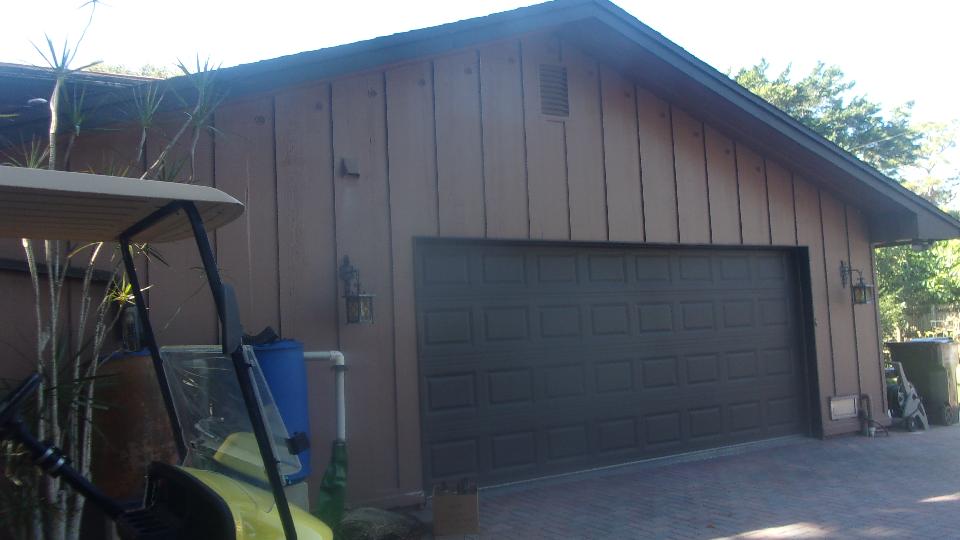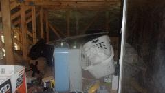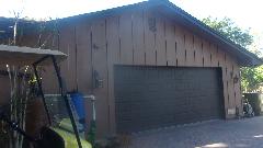 The single tall door on right has space at least three cars deep with even higher ceiling, intended as home for a boat (among other things). There is another tall drive through door in back, but not much space behind before the property line. Some negotiation going on to lease a legal right away across the property line to be able to drive out the back and down a neighbor's driveway for access to the next street over, so the boat and tow vehicle might drove in the front and out the back.