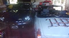 Then off to visit another neighbor John Holic, just behind Rick's place, walk through a gate in the back fence to get there. No shortage of garage space here. The car under the cover is s Saab, but not much interest today.