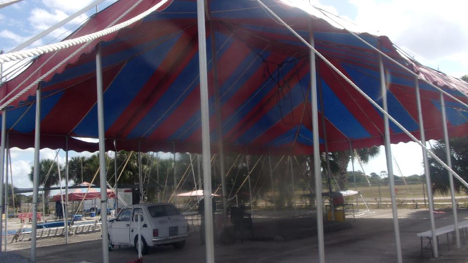 Then we took a little "coffee break" diversion to visit Tito's work place, i and around the Big Top circus tent. Like flying? Forget the airplane and take the trapeze. Tito is in his mid-70's now, and has been flying since before he was 10 years old, so maybe 65 years. He still performs in public, and "on the side" he runs his flying school for people of all ages apparently.