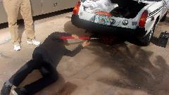 Checking under the rear end to verify there is enough space (just enough space st 28 inches minimum) between the rear axle and trailer hitch. Then spent some time brainstorming on how to attach the spare in a manner to be accessible when needed. One of the better traits of a good engineer. -- Then as an aside, checking out a Jeep wheel. This vehicle had been smashed, and part of the repair was to replace one wheel with a "rebuilt" wheel, which should be same as original. Unfortunately the clear coat paint was peeling off all over after 30 days in service, so it had to be replaced again with a new wheel. Now the body shop wants the "rebuilt" wheel back (fair enough), hopefully to beat the Chinese supplier over the head with it to get better quality parts in the future (one of my favorite subjects).