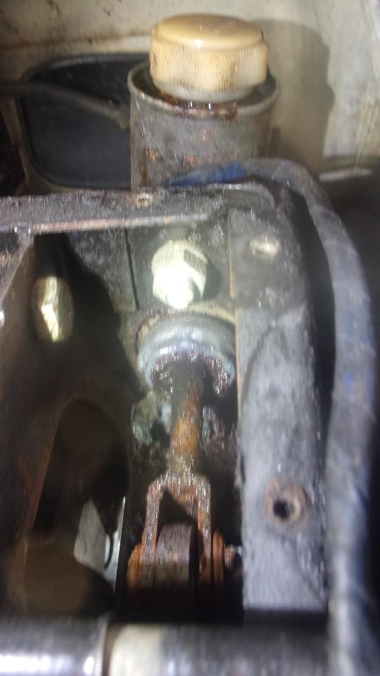 handle, which is the only way to get at the lower bolt. Fortunately the lower hex nut was welded to the bracket, one of the few things the factory did right. Time to order a new clutch master cylinder and wait for delivery.