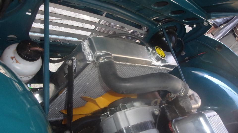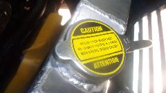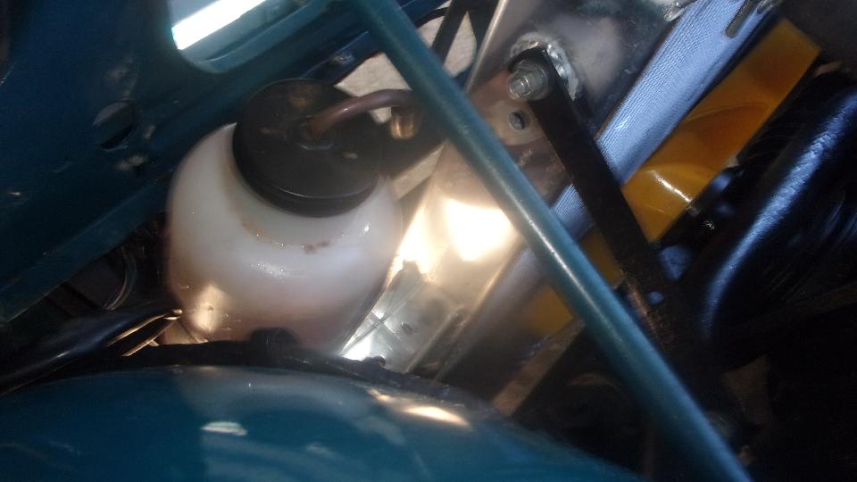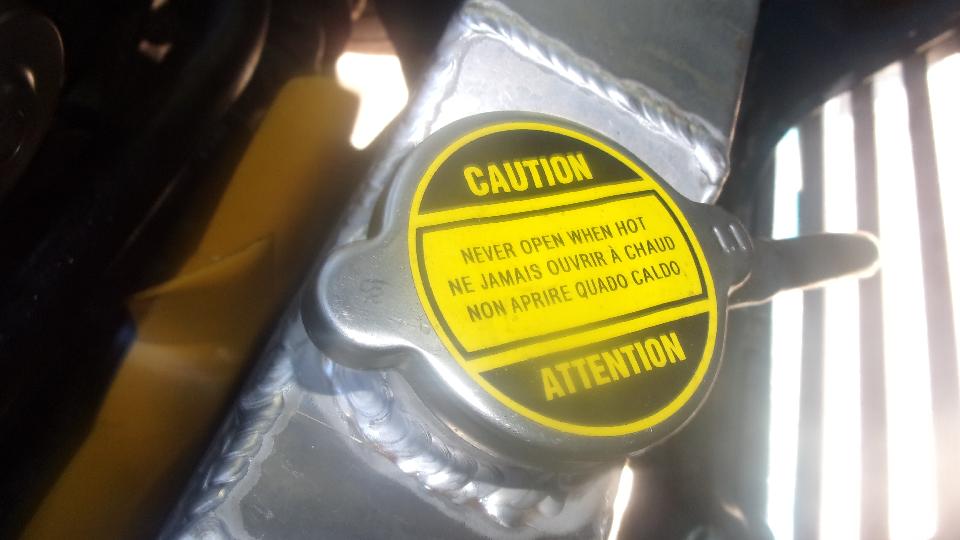 New 11-psi pressure cap is good for about 248dF boiling point (at sea level) with plain water for best heat transfer (and Redline Water Wetter additive for corrosion resistance). 50% ethylene-glycol antifreeze would raise the boiling point to nearly 270dF, but with slightly less heat transfer. There is also a coolant recovery bottle on the side to assure there is never any air in the radiator.