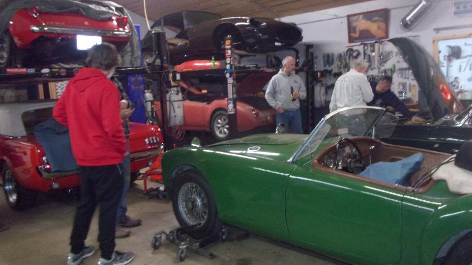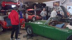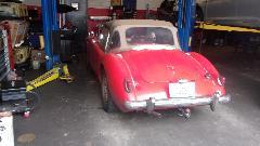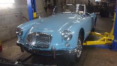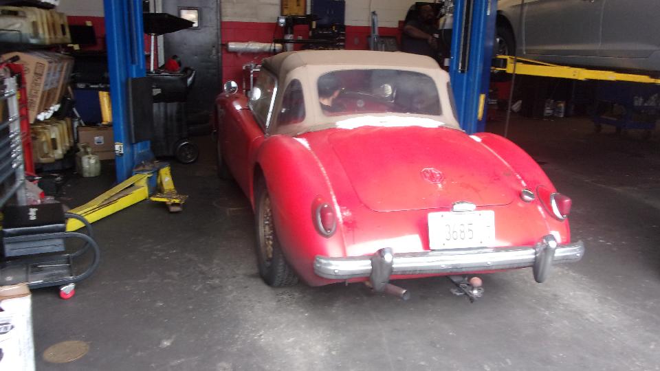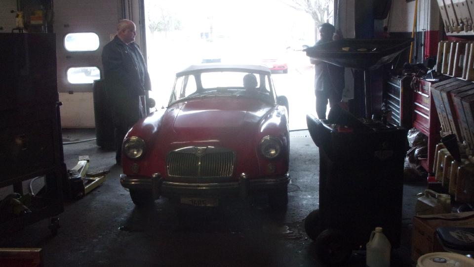 Today we were visiting Northshore Sportscars in Lake Bluff, IL. Been here several time before. The business was recently taken over by Michell by buying out her father Norb Bries. Best wishes to Michell. This trip was for a post-purchase inspection of an MGA recently acquired by a friend in Florida, Curtis Skomp (photos and notes at bottom of prior page). Purpose of the inspection it to see if there may be anything the new owner would like to have fixed before shipping the car off to Florida. He intends to give it to his wife to toy around in, so wants it to be in very good condition on arrival. It is an "older restoration, body-on", looks like it will be a very nice daily driver. I found a few flaws, nothing to write home about, maybe a few things to be fixed or adjusted once the owner decides on priorities. Someone said I was there for three hours. Took too many pictures I guess, as my camera battery was going dead just as I was finishing.