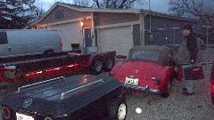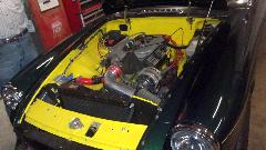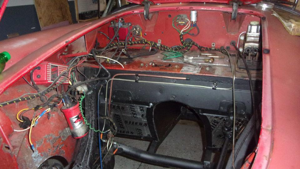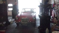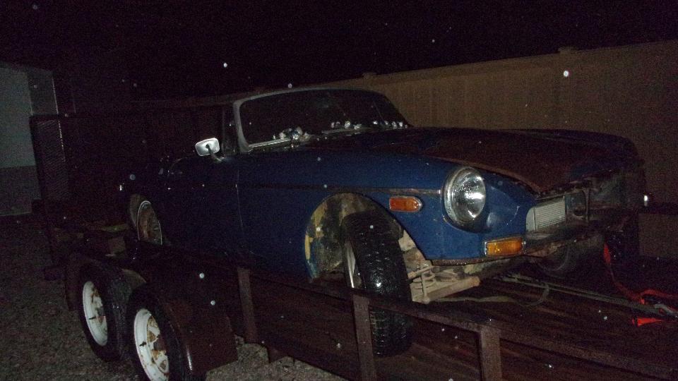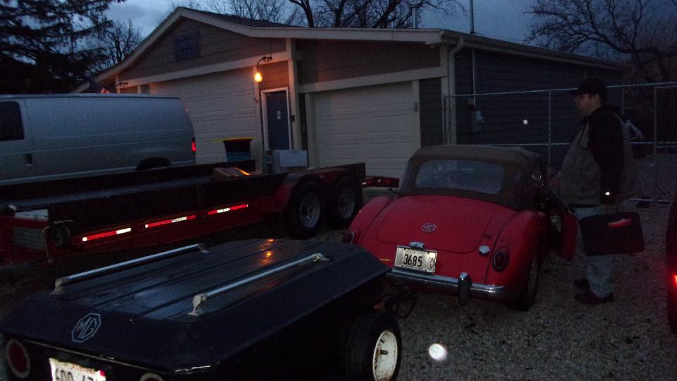 MGA under restoration, debating on possible desire to paint the engine bay while checking out the high energy ignition box on the inner wing. We were supposed to be working on turn signals, but not tonight without a battery. Restocking the fridge, not to run out of the good stuff. Then a quick trip to the yard to check out the new acquisition, old MGB wanting some TLC.