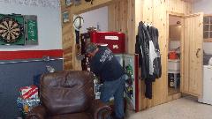 P.S. - Posting this a few days late (midnight Sunday morning), due to overloaded schedule this week. Got to the Wednesday Night Garage Club at "Tommy's Garage" (Tom Raddatz) in Lagrange Highlands, IL (man I needed the break). Arrived 7-pm and wolfed down a cheeseburger before jumping into the fray. Six cars in the first picture, and that's not all. First a little discussion about removing engine of Tom's V6 MGB and stripping the engine bay for painting in preparation for sale. Should sell better if the car was all one color.