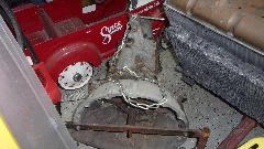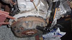Now we get to the E-Type V12 engine and manual gearbox in the next room. Possible buyer sending inquiring. Clean off the engine number to verify the correct E-type engine, and send a short video to show we can turn the flywheel by hand.