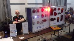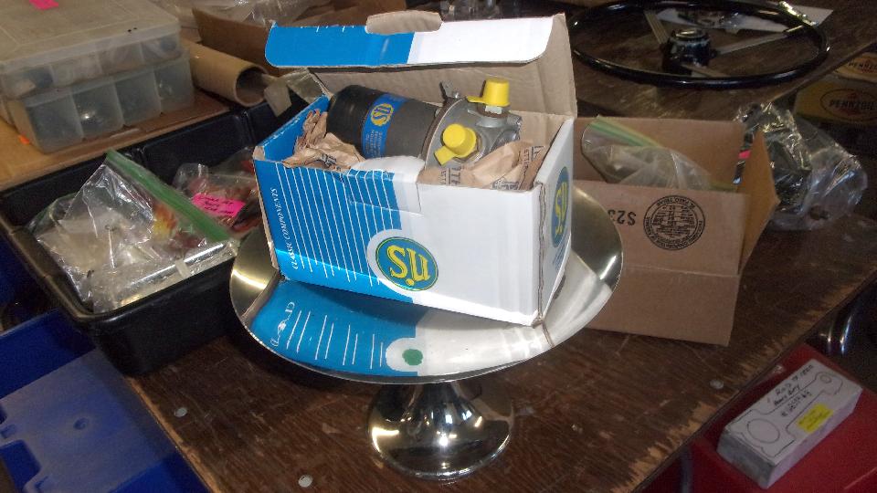 I stopped at the Bittrix booth and picked up a couple LEDs, screw-ins for dash lights. I have been using LEDs from Moss Motors, used to pay $7 to $8 each, but as much as I drive they were failing in about 6-months (couldn't stand the vibration I suppose). The Moss price has been falling recently, maybe they figured out they were selling junk again. The new ones from Brittrix are encapsulated in epoxy, so I will see how these hold up to "normal" use. Oh, there was a New Old Stock SU (electronic) fuel pump on a silver pedestal. I didn't ask the price, because I still don't like electronics in cars.