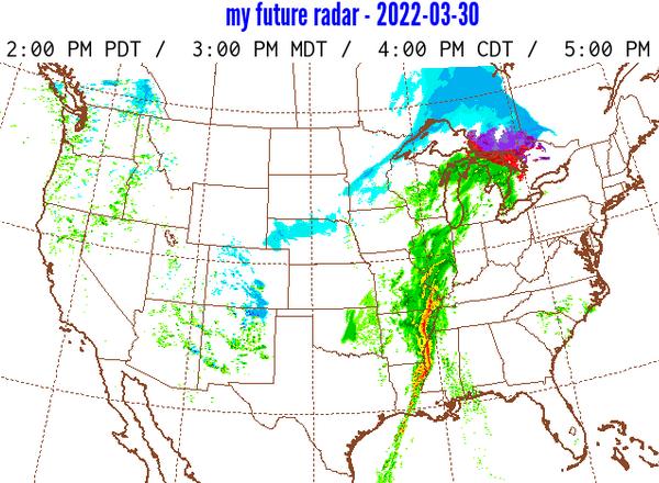 (except warmer and rainy tomorrow. "My Future Radar" is a neat web site, kind of a crystal ball into the future showing projected radar weather maps on the fly. Heavy storm front going through on Wednesday, not enough time to drive far enough south to get away, so we decide to go south some today, then sit tight under shelter while the windy wet stuff passes through. Straight south near central IL and northern KY will get hit hardest late night Wednesday. Southwest IL near St Louis Will get hit hardest in mid afternnoon Wednesday. Rather sit through it in the afternoon than sleep with it at midnight. So we saddled up and drove 240 miles southwest to near East St Louis, IL.