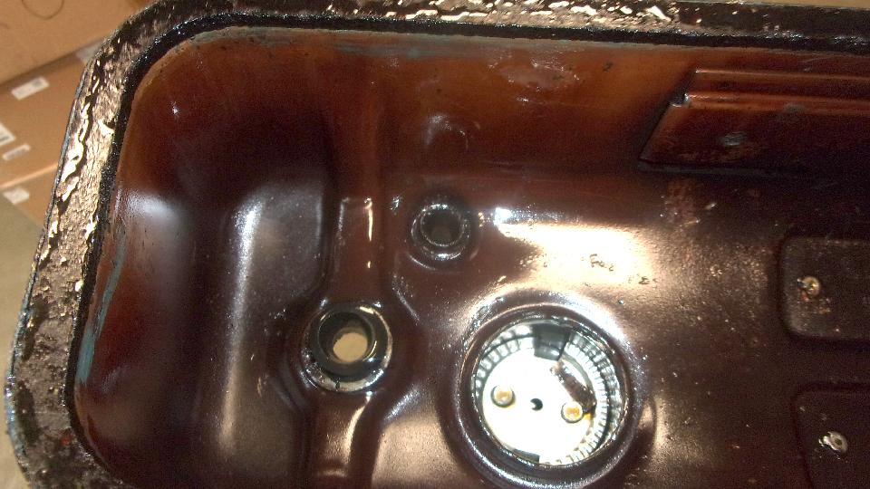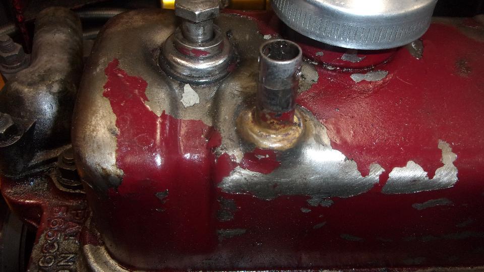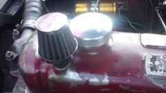 the engine oil. Not bad this time, only a half quart low after weeks of using as much as two quarts per tank of fuel. Okay, four months to the day from when we removed the top vent hose and installed the little air filter on the rocker cover (to avoid oiling up the front air filter). But this is just one tank after removing the little air filter and reconnecting the vent hose from rocker cover to front air cleaner. So maybe there really is something to this idea that vacuum in the air cleaner is sucking reverse air flow up the tappet cover draft pipe, and having that sort of effect on oil consumption. Wow. If so, this going to stimulate lots more discussion in open forum on the BBS.