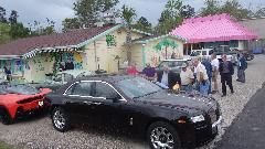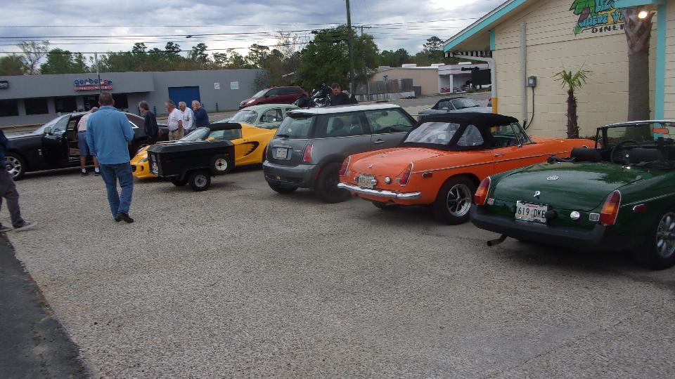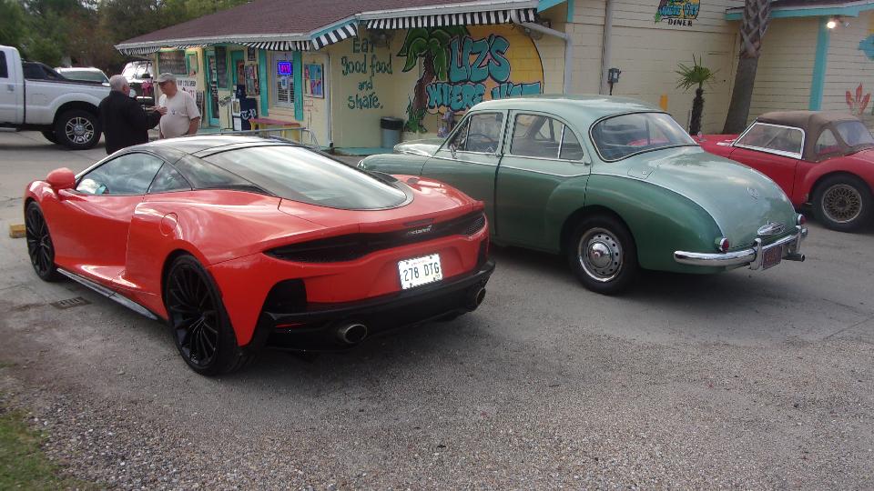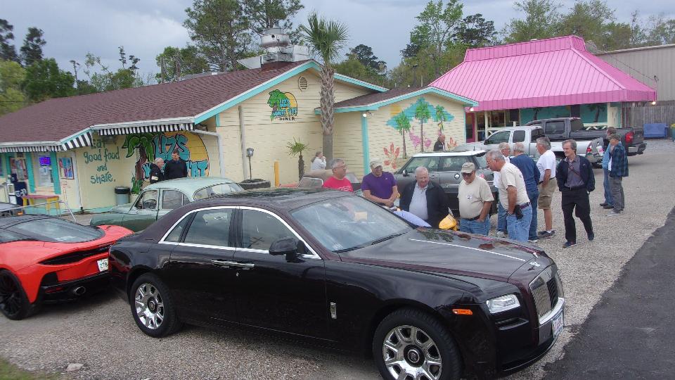 Off to Mandeville, Louisiana in the morning to Liz's Where Y'At Cafe for Cars & Coffee with the British Motoring Club New Orleans (North Shore group). We were a tad early, first ones in for a change, but the car park was then filling up fast. By the time we all were seated for breakfast there were at least 15 at the long reserved table, and a few spill-overs to the next isle. An hour later we were back kicking tires, and look what was hiding behind the big Rolls Royce, a little Lotus Elise.
